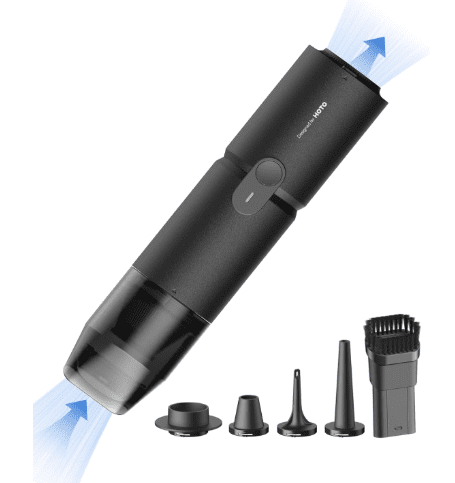 - It works as a vacuum, air blower, inflator, and vacuum sealer, making it ideal for desks, keyboards, computers, car interiors, and small spaces.