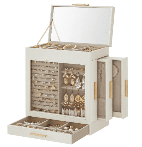 - A large built-in mirror adds convenience, perfect for your daily jewelry routine.