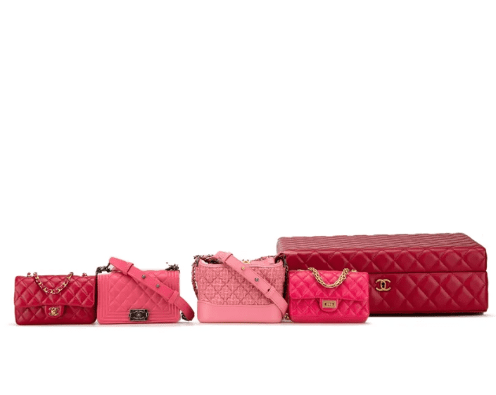 - Chanel Pre-Owned 2020 Limited Edition Success Story Quilted Lambskin Trunk Set of 4 Mini Bags (Original Price $36790): A rare collector’s set from Chanel featuring four mini crossbody bags in lambskin leather, the ultimate luxury investment piece.