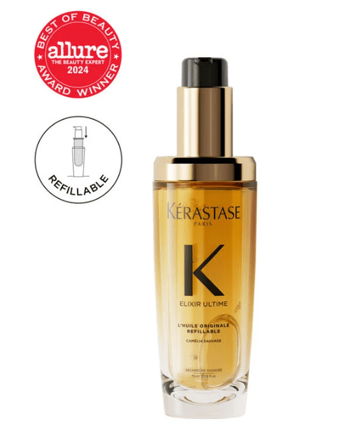- Elixir Ultime L’Huile Original Hair Oil Refillable for Hair Shine (Original Price $62): A lightweight, refillable hair oil that boosts shine and smoothness while leaving hair silky and radiant.