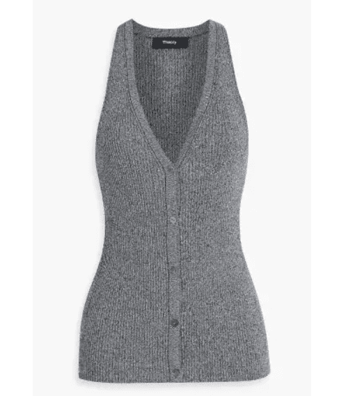 - Theory Ribbed Cotton-Blend Sleeveless Top (Original Price $295): A versatile essential with a clean silhouette and subtle texture—ideal for layering under tailoring or wearing solo for a polished, understated look.