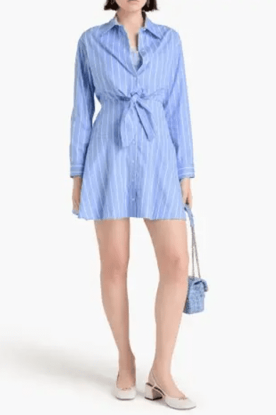 - Sandro Tie-Detailed Striped Cotton Poplin Mini Shirt Dress (Original Price $415): A chic everyday mini dress with crisp stripes and modern tailoring.