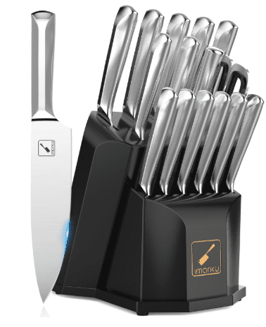 Take your culinary skills to the next level with the imarku 16-Piece Kitchen Knife Set. Designed in California, this premium set combines professional-grade sharpness, durability, and ergonomic comfort, making it perfect for everyday cooking or special occasions. With advanced precision-forged high carbon stainless steel blades, these knives stay razor-sharp and rust-resistant, while the non-slip handles ensure a safe and comfortable grip.