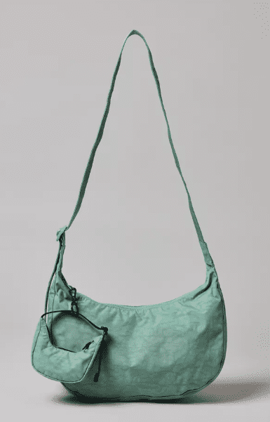 - Baggu Medium Nylon Crescent Bag (Original Price $52): A modern crescent-shaped shoulder bag with a sleek silhouette and soft nylon finish, perfect for day-to-night wear.