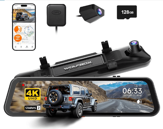 Upgrade your driving safety and recording experience with the WOLFBOX G900 PRO Mirror Dash Cam, a high-tech solution for both cars and larger vehicles. This sleek 12-inch rearview mirror camera offers crystal-clear front 4K and rear 2.5K resolution, perfect for capturing every detail on the road.